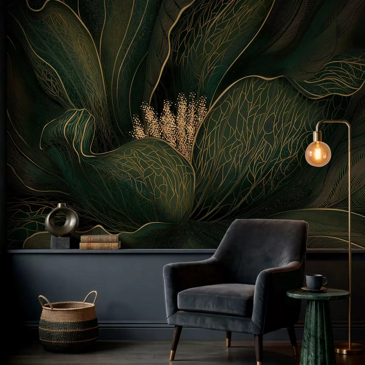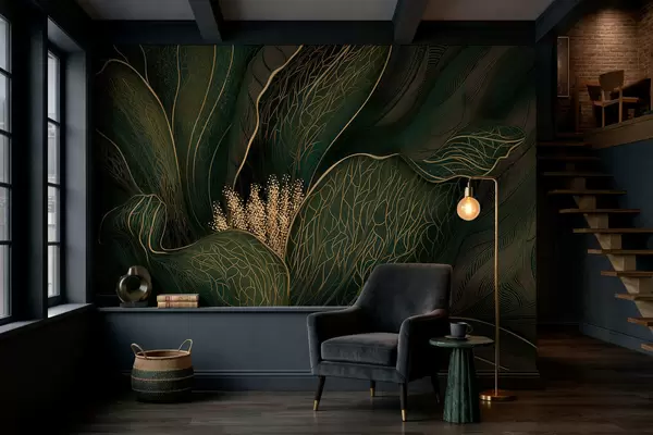 Fototapety Tmavě zelená abstraktní květina s jemnými linkami Č. w05119v1