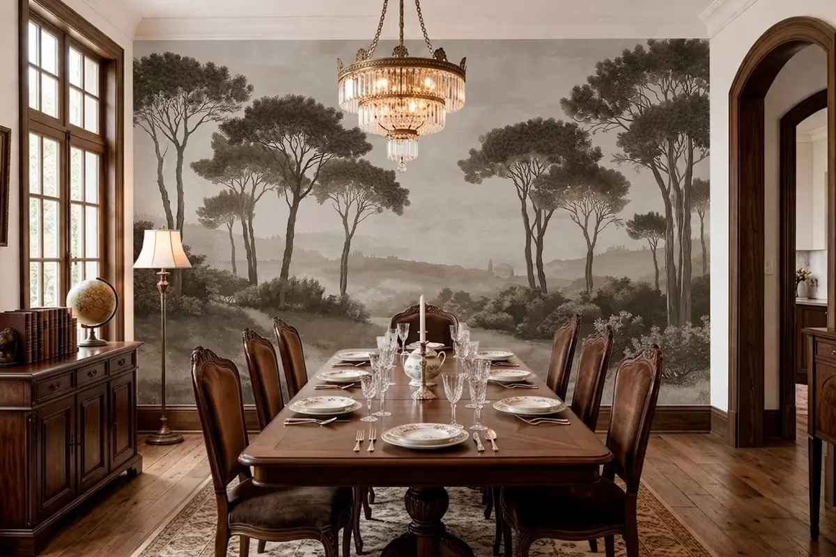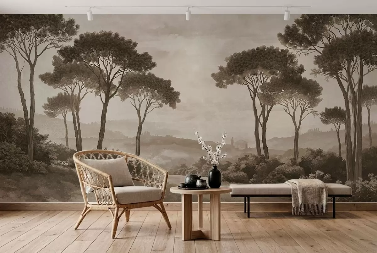 Fototapety Krajina se stromy v retro sépiovém odstínu Č. w05122v2