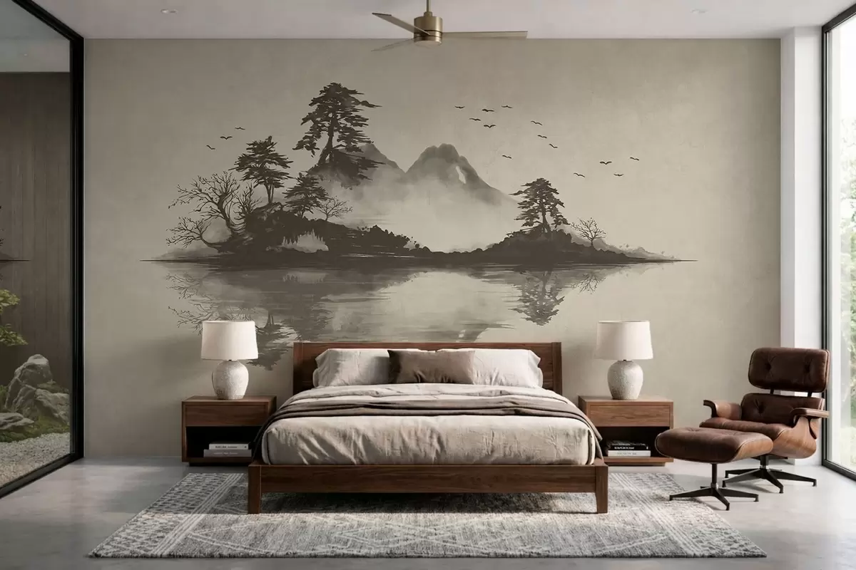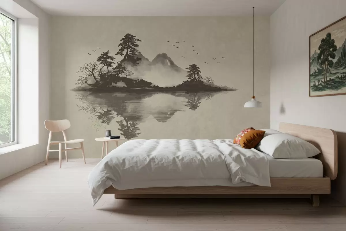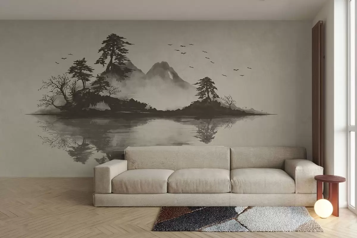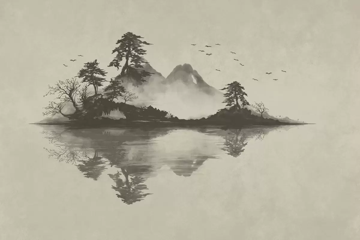 Fototapety Horská krajina v technice sumi-e v jemných šedých tónech Č. w05124v1