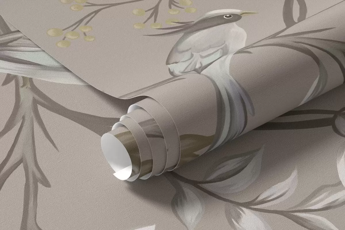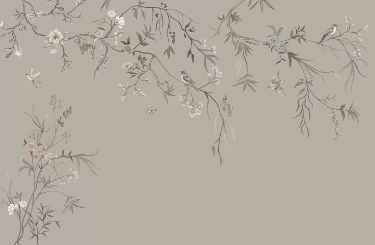Fototapety Květinový ornament s ptáky na neutrálním pozadí Č. w05127v3
