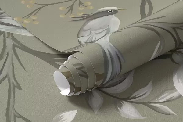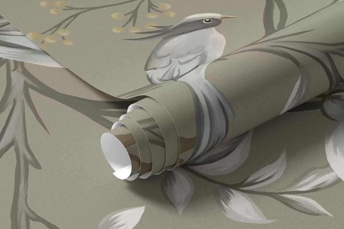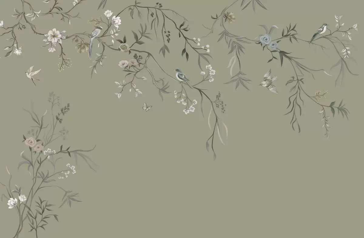 Fototapety Květinový motiv s ptáky na šedém pozadí Č. w05127v4