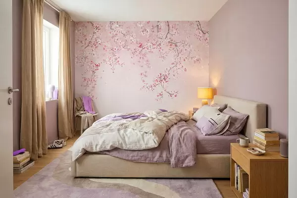 Fototapety Větve s růžovými květy na jemném pastelovém pozadí Č. w05129v1