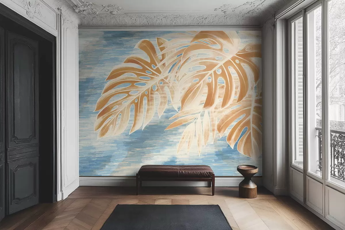 Fototapety Listy v jemných pískových tónech na modrém pozadí Č. w05130v1