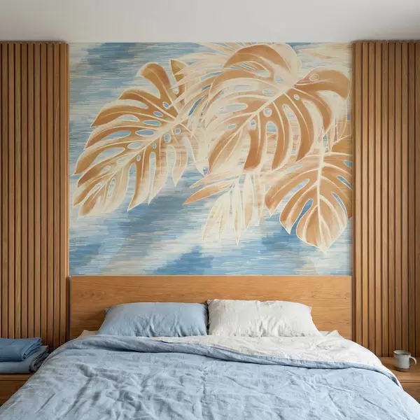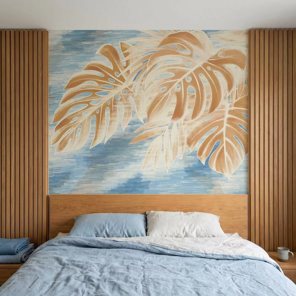 Fototapety Listy v jemných pískových tónech na modrém pozadí Č. w05130v1