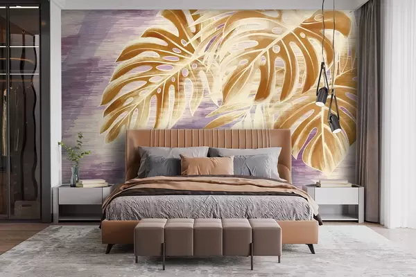 Fototapety Listy v teplých oranžových tónech na fialovém pozadí Č. w05130v2