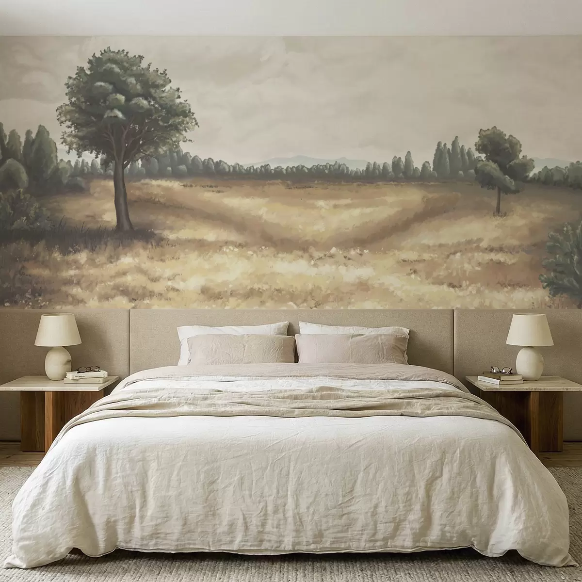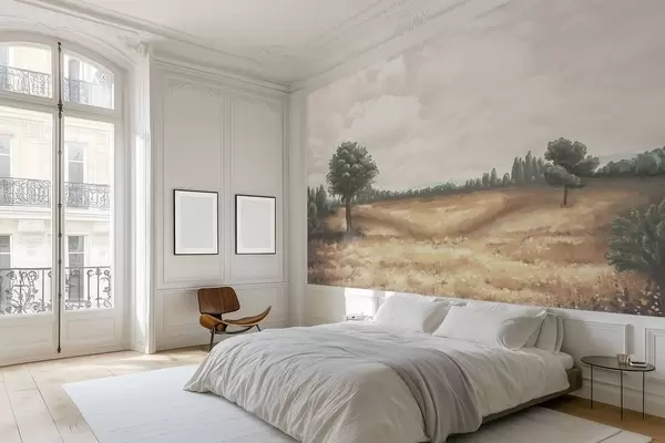 Fototapety Malovaná krajina se stromy a otevřeným polem Č. w05131