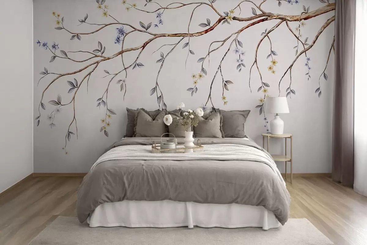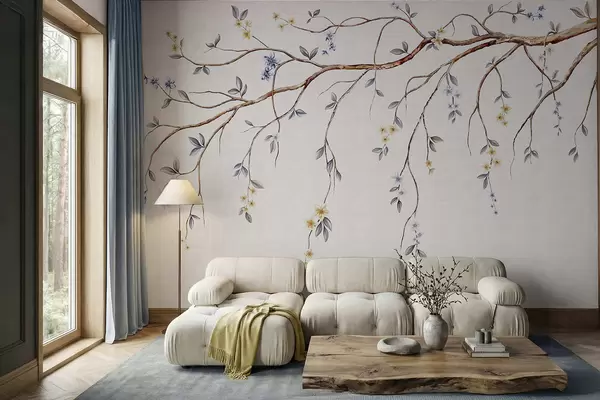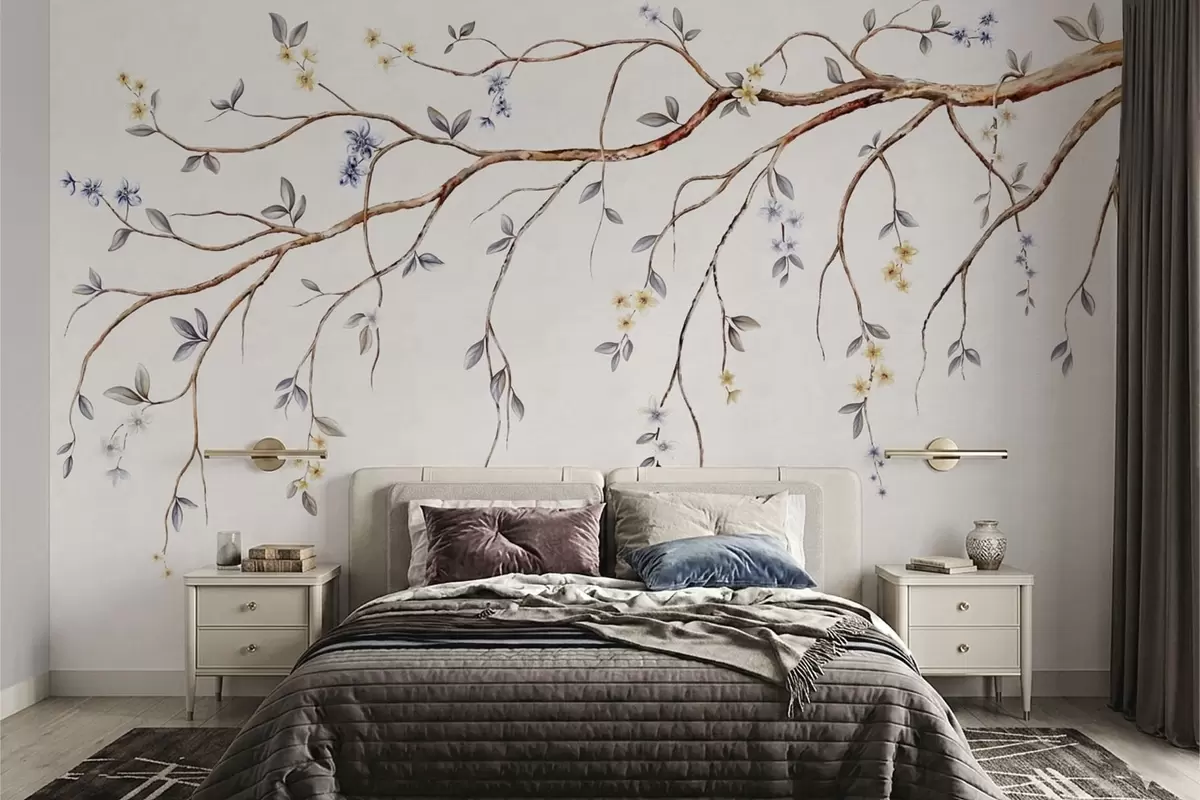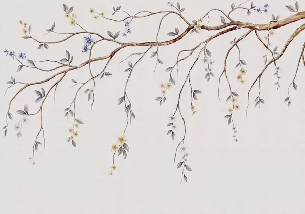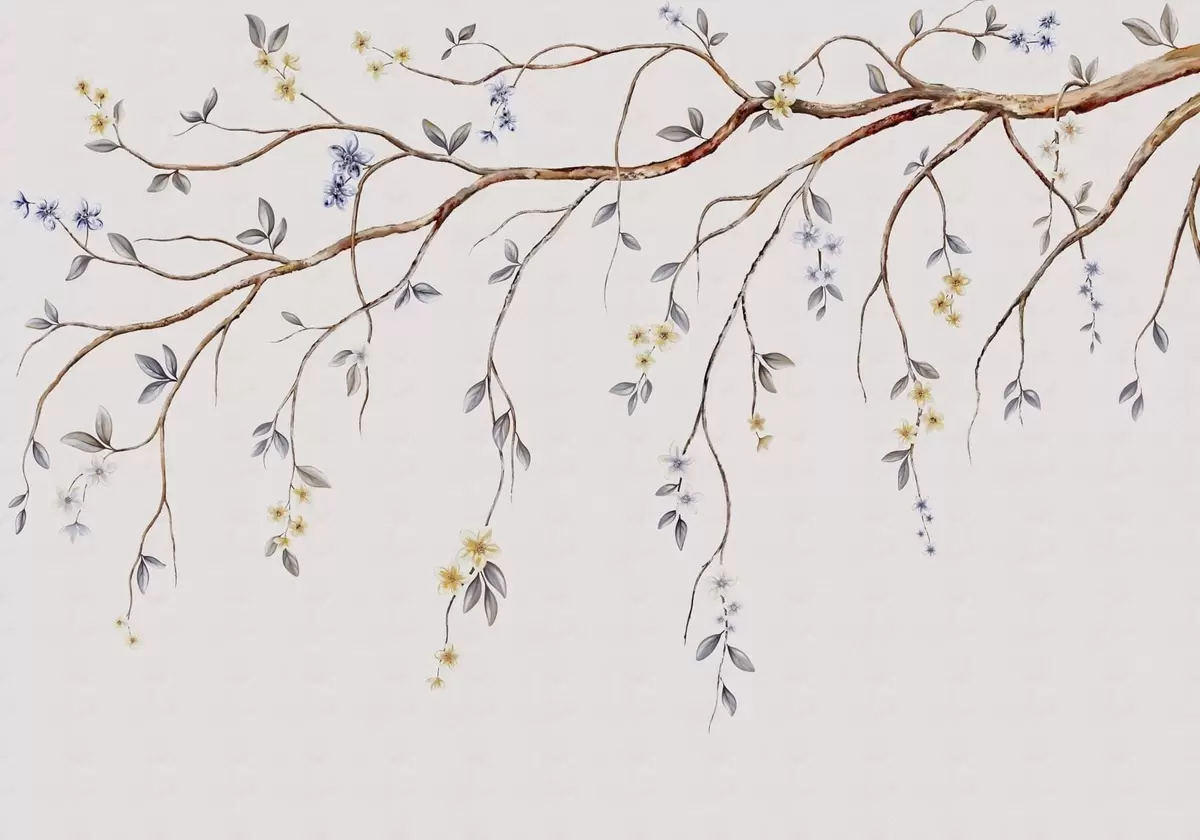 Fototapety Tenké větvičky s malými květy na světlém pozadí Č. w05145