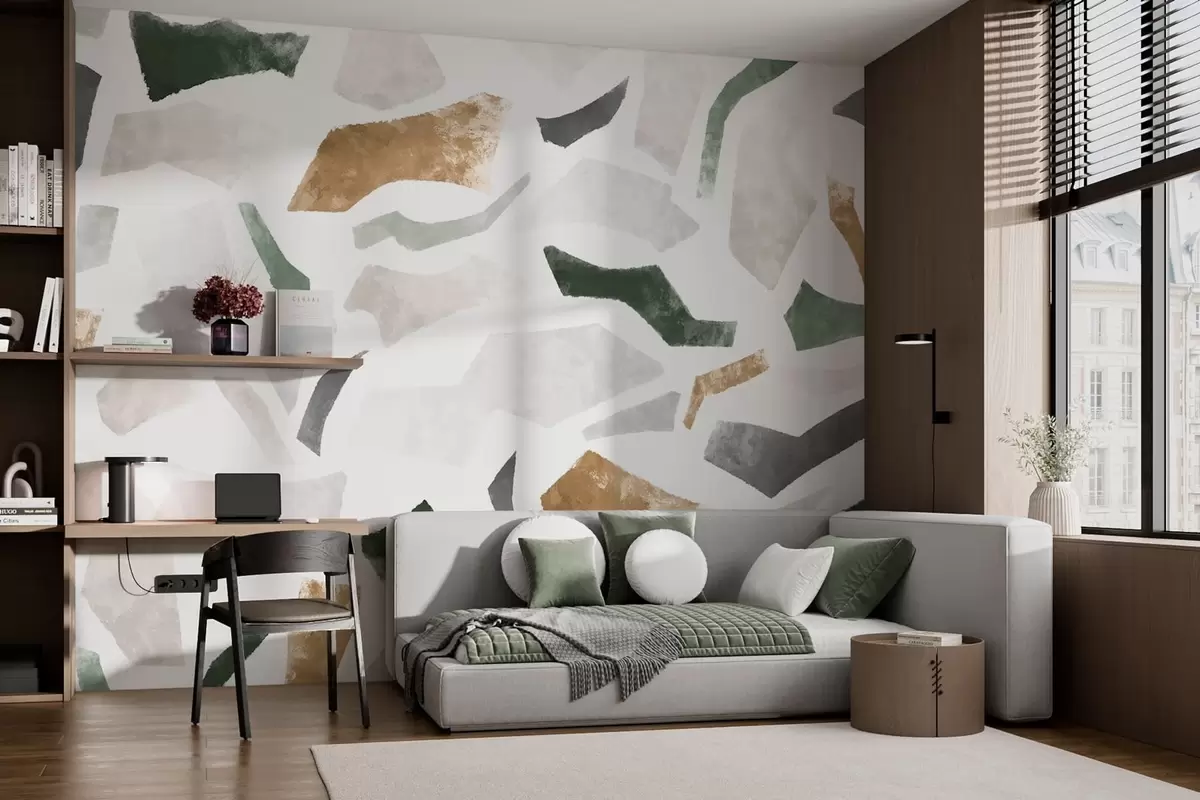 Fototapety Abstraktní texturované fragmenty v zelených a béžových odstínech Č. w05146