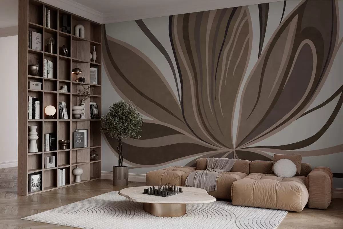 Fototapety Stylizovaná květina s ladnými liniemi v hnědých odstínech Č. w05147