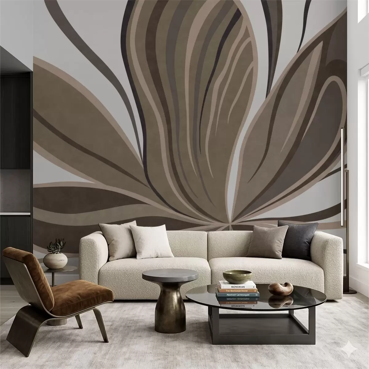 Fototapety Stylizovaná květina s ladnými liniemi v hnědých odstínech Č. w05147