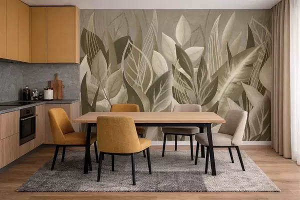 Fototapety Abstraktní listy v béžových a zelených odstínech Č. w05148