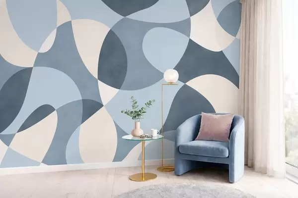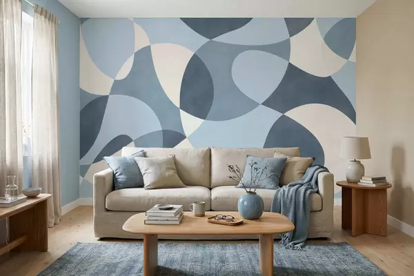 Fototapety Abstraktní vzor se zaoblenými tvary v modrých odstínech Č. w05149v2