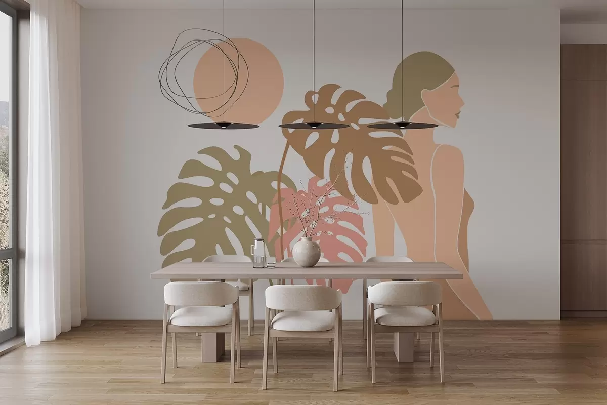Fototapety Silueta ženy poblíž tropických listů Č. w05192v1