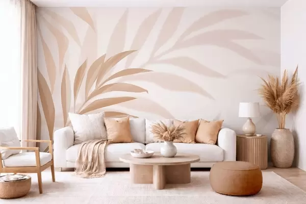 Fototapety velké zakřivené palmové listy v béžových a hnědých tónech Č. w05211