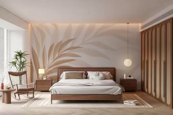 Fototapety velké zakřivené palmové listy v béžových a hnědých tónech Č. w05211