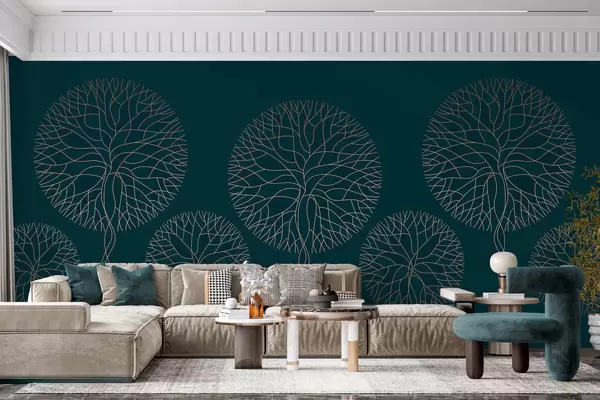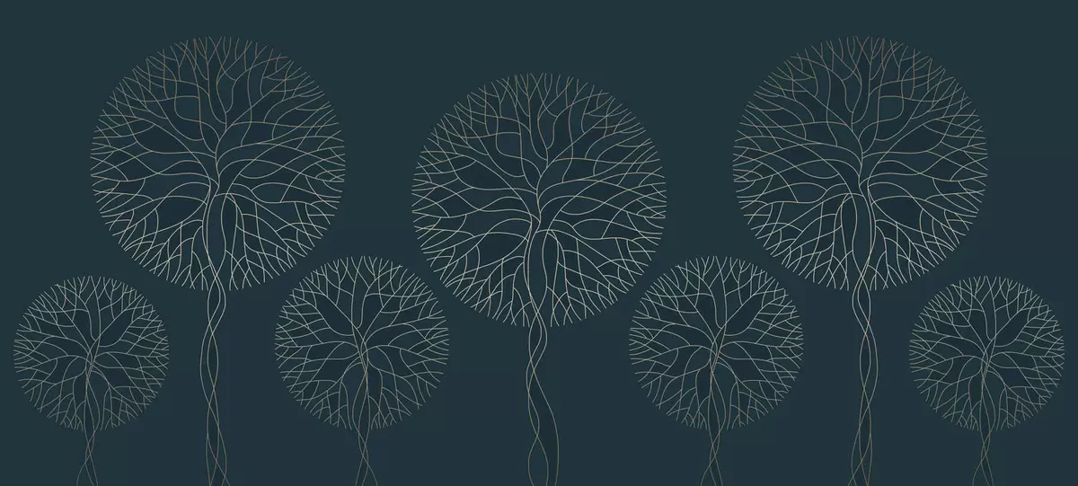 Fototapety Fantastické lineární stromy s bujnými korunami v elegantních tmavě smaragdových tónech Č. w05213