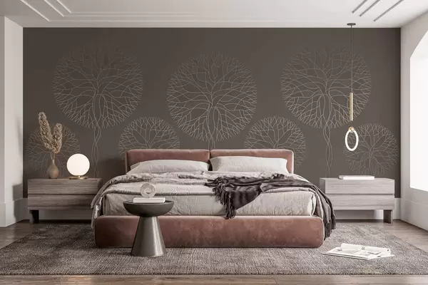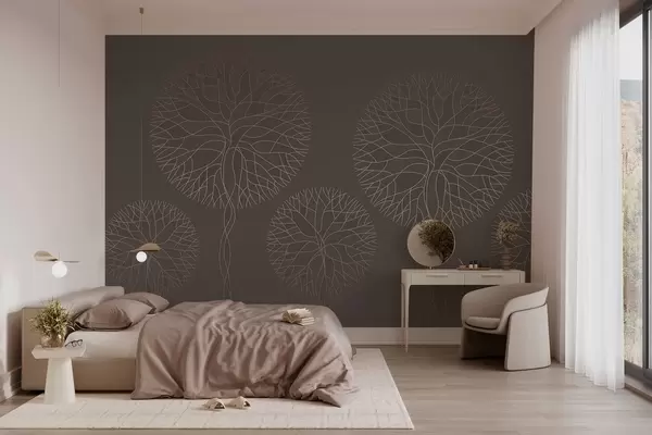 Fototapety Fantazijní lineární stromy s bujnými korunami v elegantních odstínech moka Č. w05213v1
