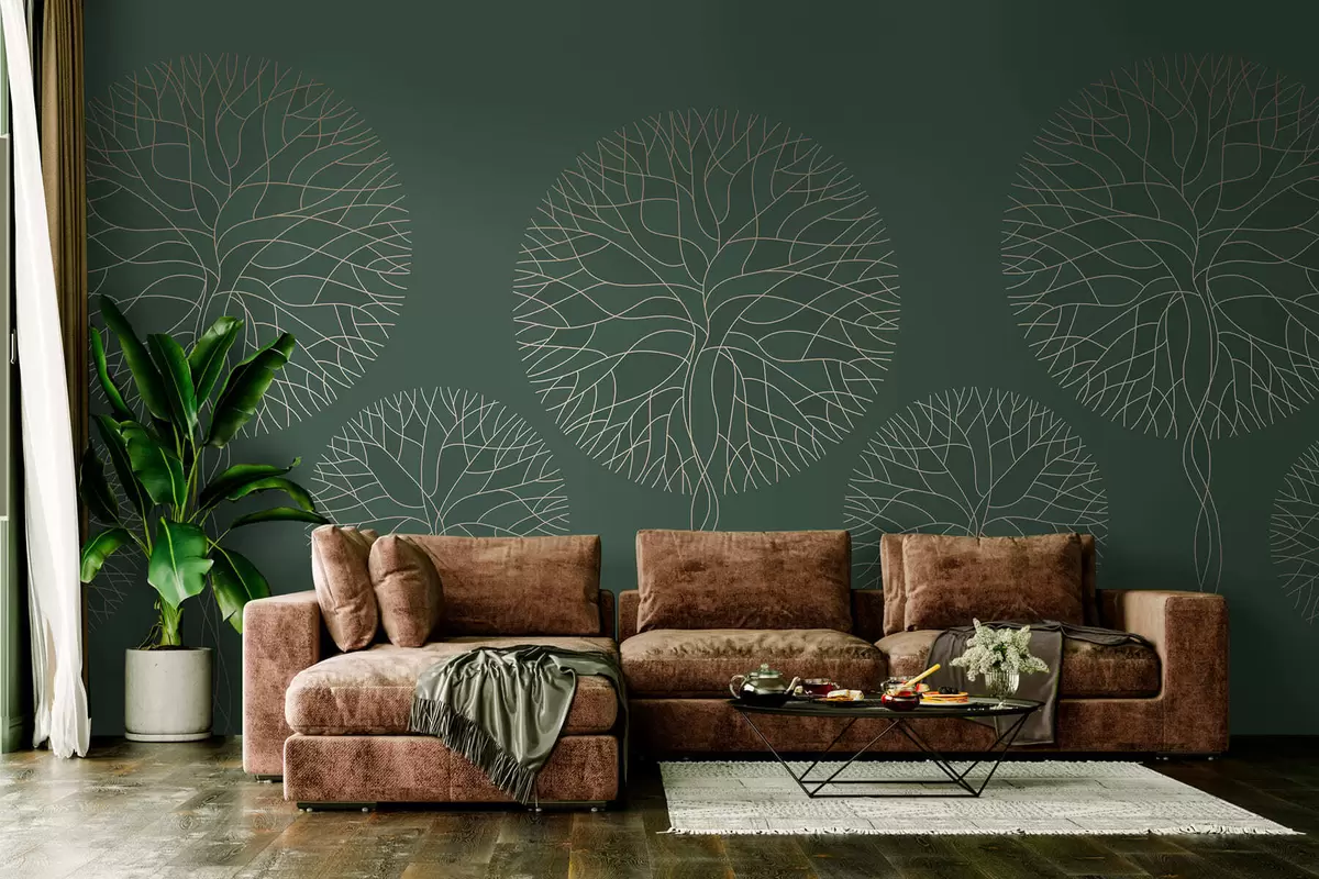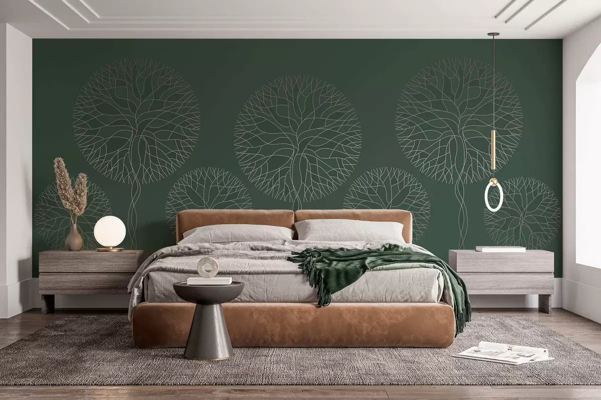 Fototapety Fantazijní lineární stromy s bujnými korunami v elegantních tmavě zelených tónech Č. w05213v2