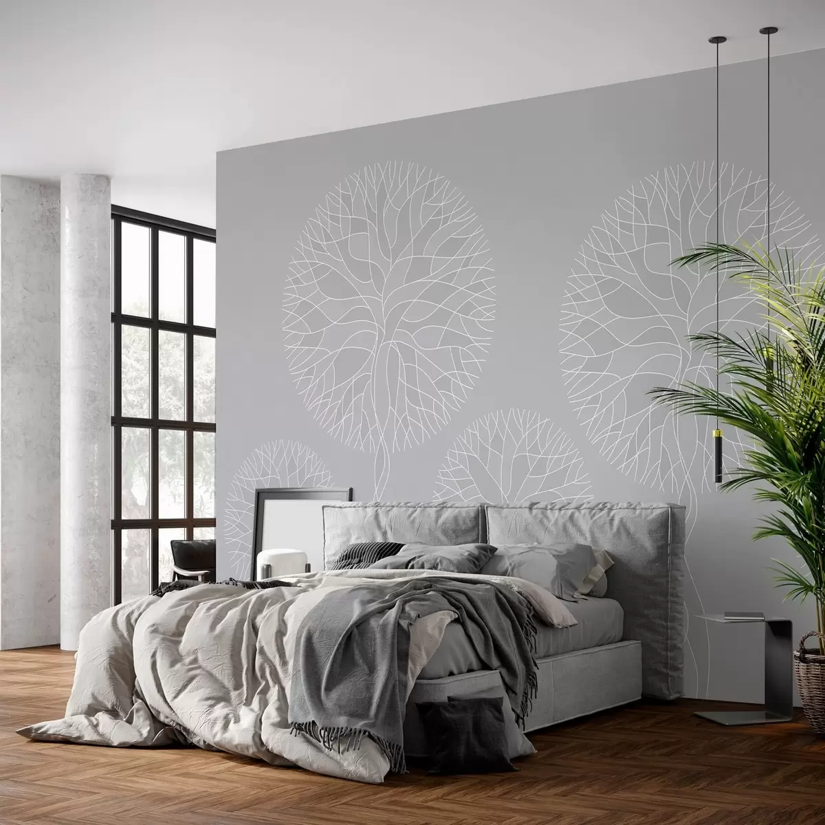 Fototapety Fantazijní lineární stromy s bujnými korunami v světle šedých tónech Č. w05213v4