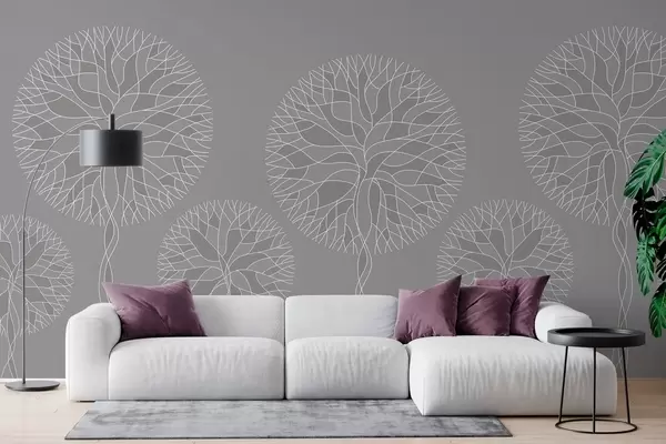 Fototapety Fantazijní lineární stromy s bujnými korunami v odstínech středně šedé barvy Č. w05213v5
