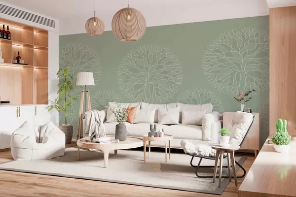 Fototapety Fantazijní lineární stromy se svěžími korunami v světle zelených tónech Č. w05213v6