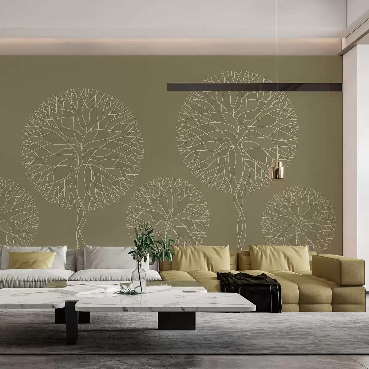 Fototapety Fantazijní lineární stromy s bujnými korunami v khaki odstínech Č. w05213v7