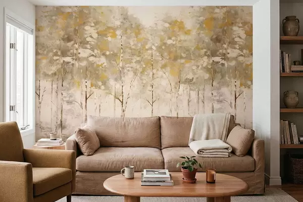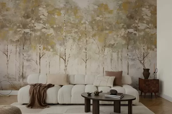 Fototapety Stylizovaný les se štíhlými stromy v teplých tónech Č. w05221