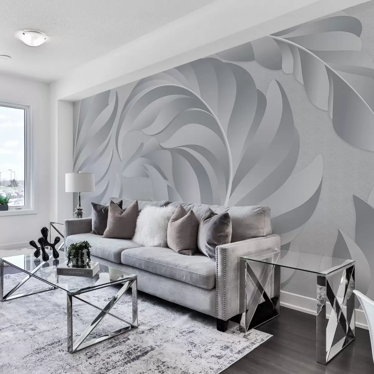 Fototapety velká texturovaná peří v odstínech šedé Č. w05231v3