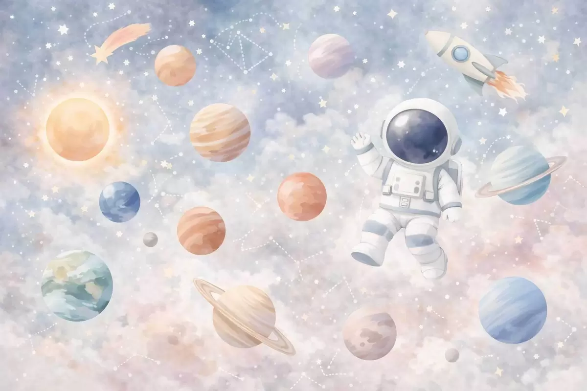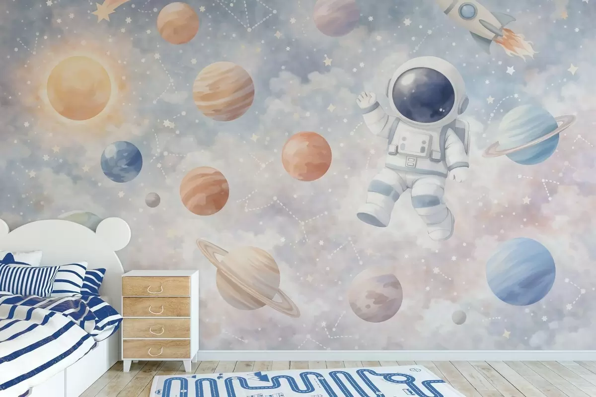 Fototapety malý astronaut mezi planetami a hvězdami Č. w05233