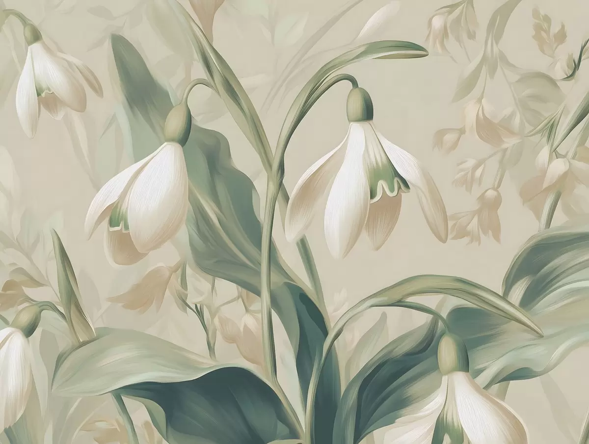 Fototapety kvetoucí sněženky na béžovém pozadí Č. w05234