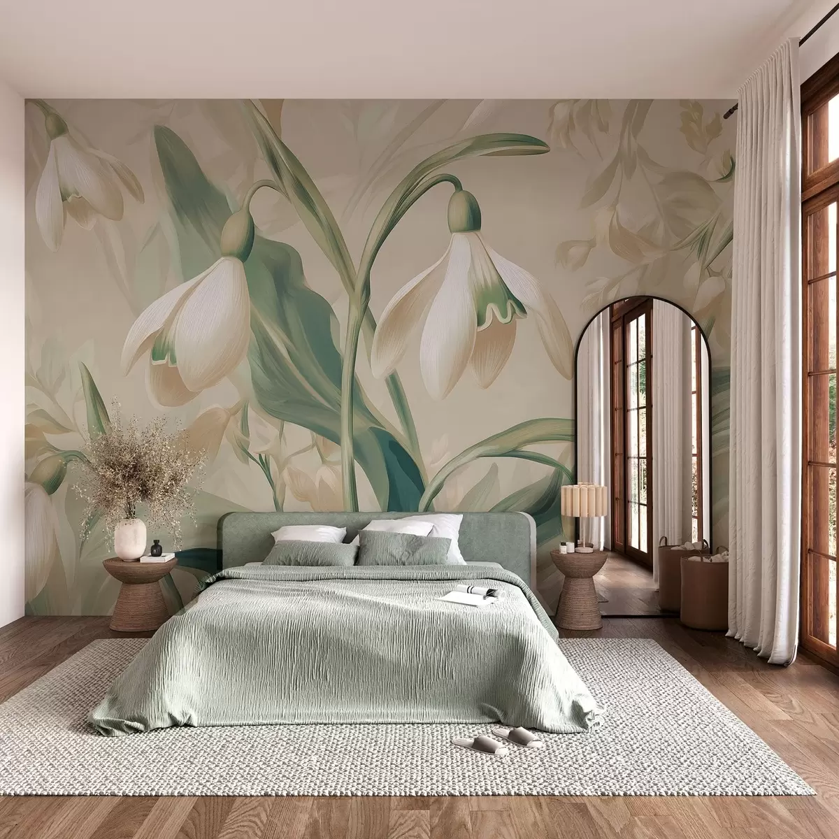 Fototapety kvetoucí sněženky na béžovém pozadí Č. w05234