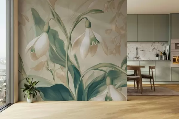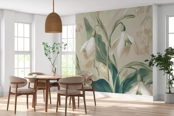 Fototapety kvetoucí sněženky na béžovém pozadí Č. w05234