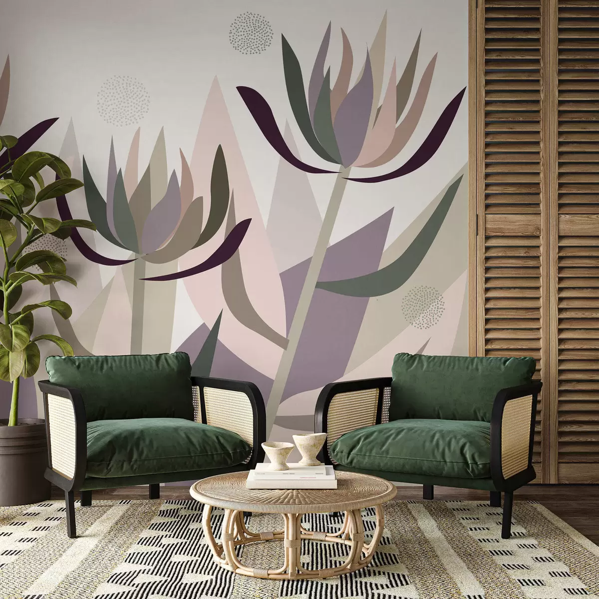 Fototapety stylizované květy protey v primitivním stylu Č. w05236