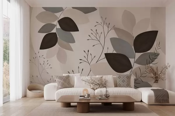 Fototapety listy a tráva v odstínech béžové, šedé a hnědé Č. w05237