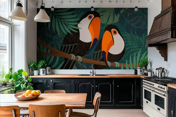 Fototapety dvojice tukanů na větvi v africkém stylu Č. w05239