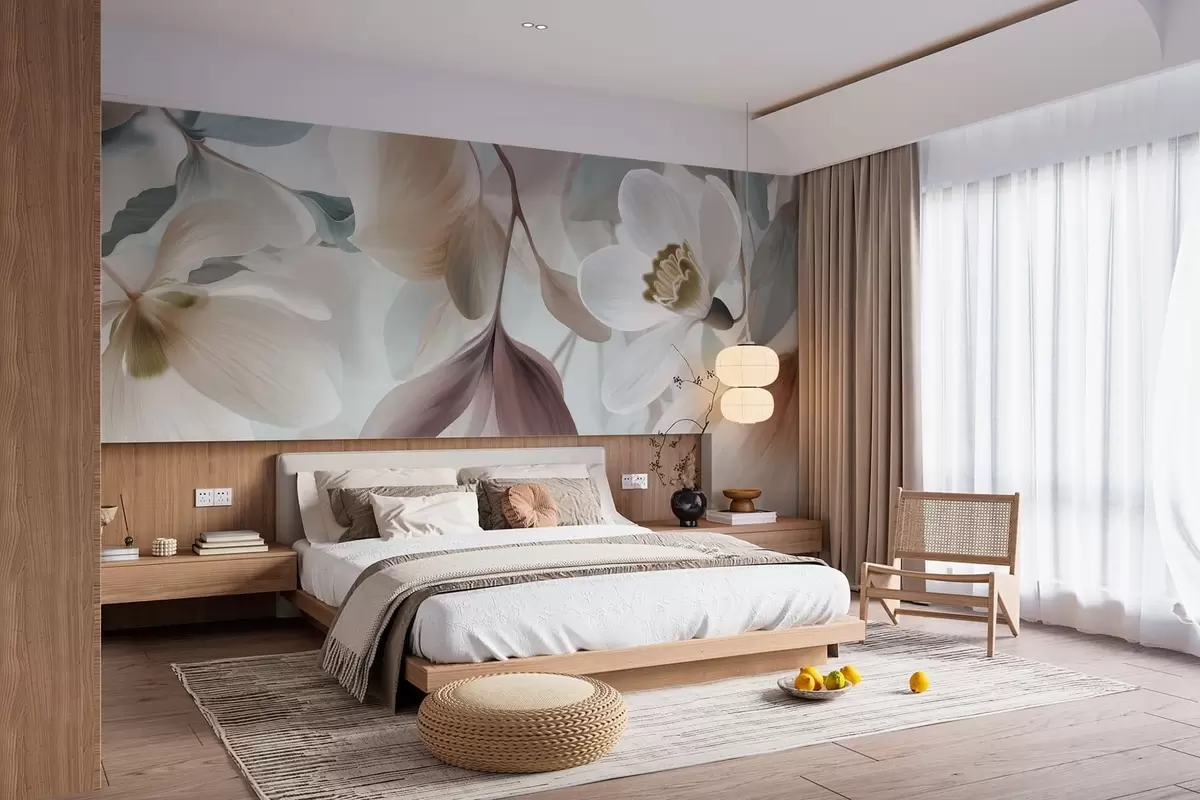 Fototapety jemná kompozice květů a listů v pastelových odstínech Č. w05240
