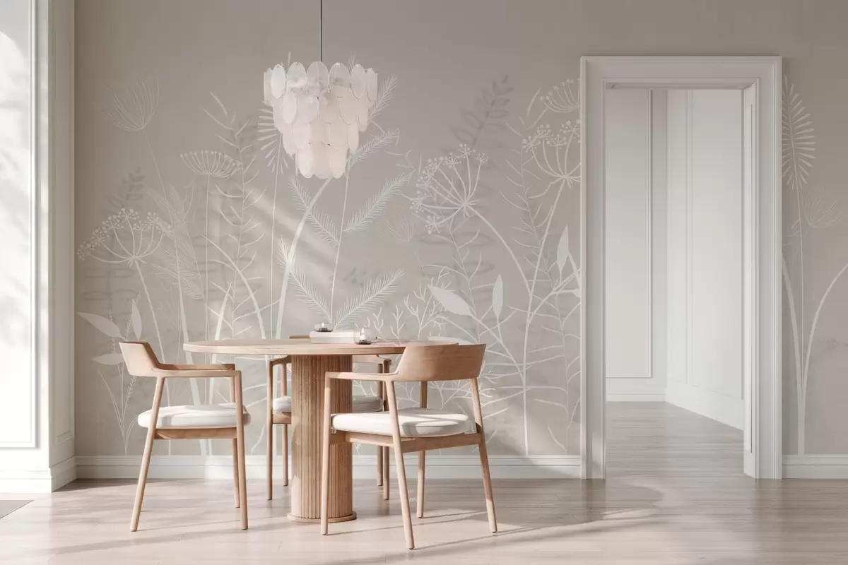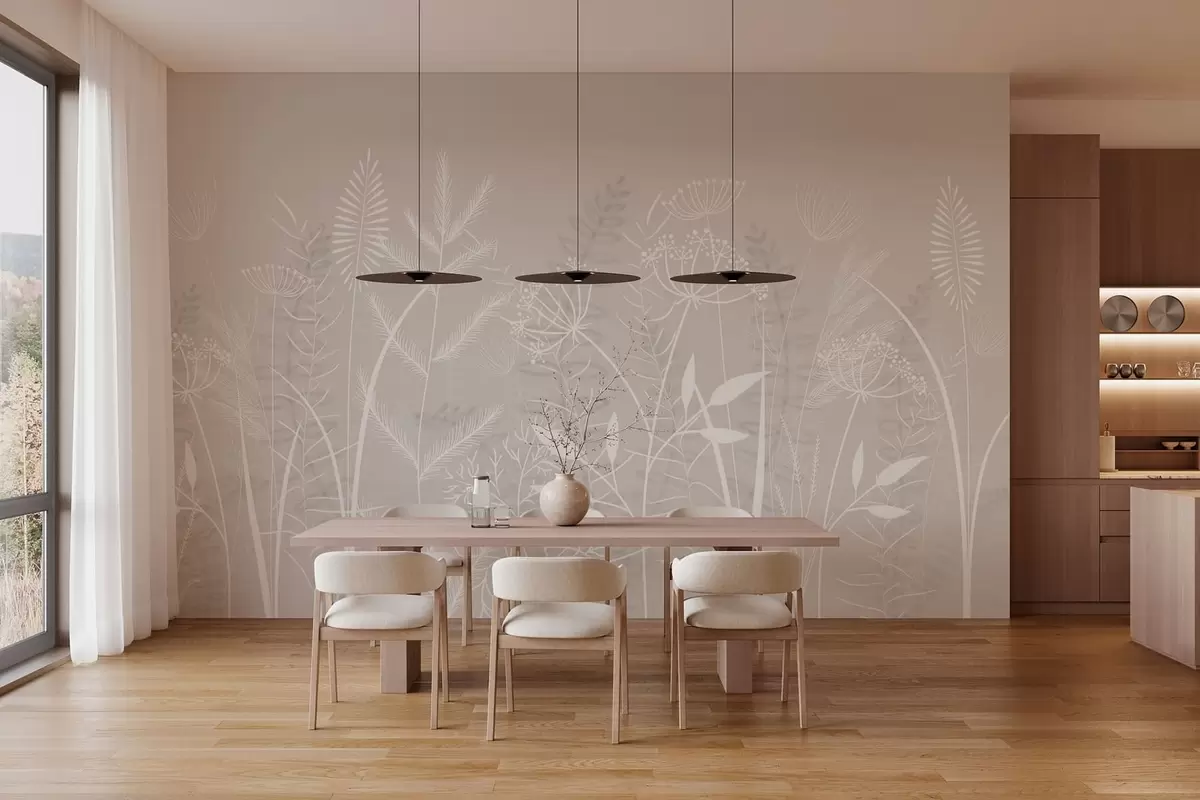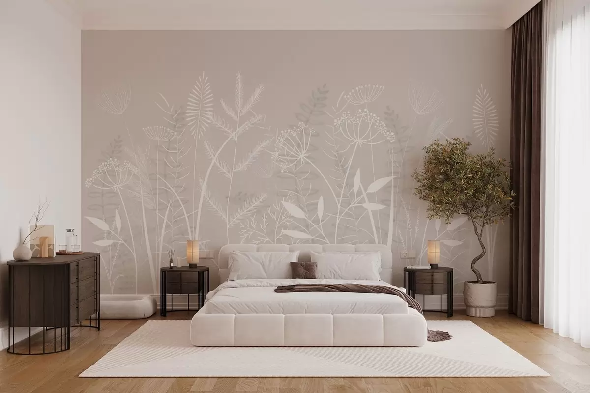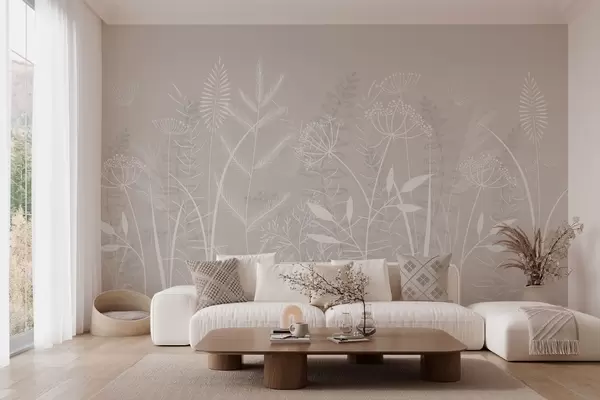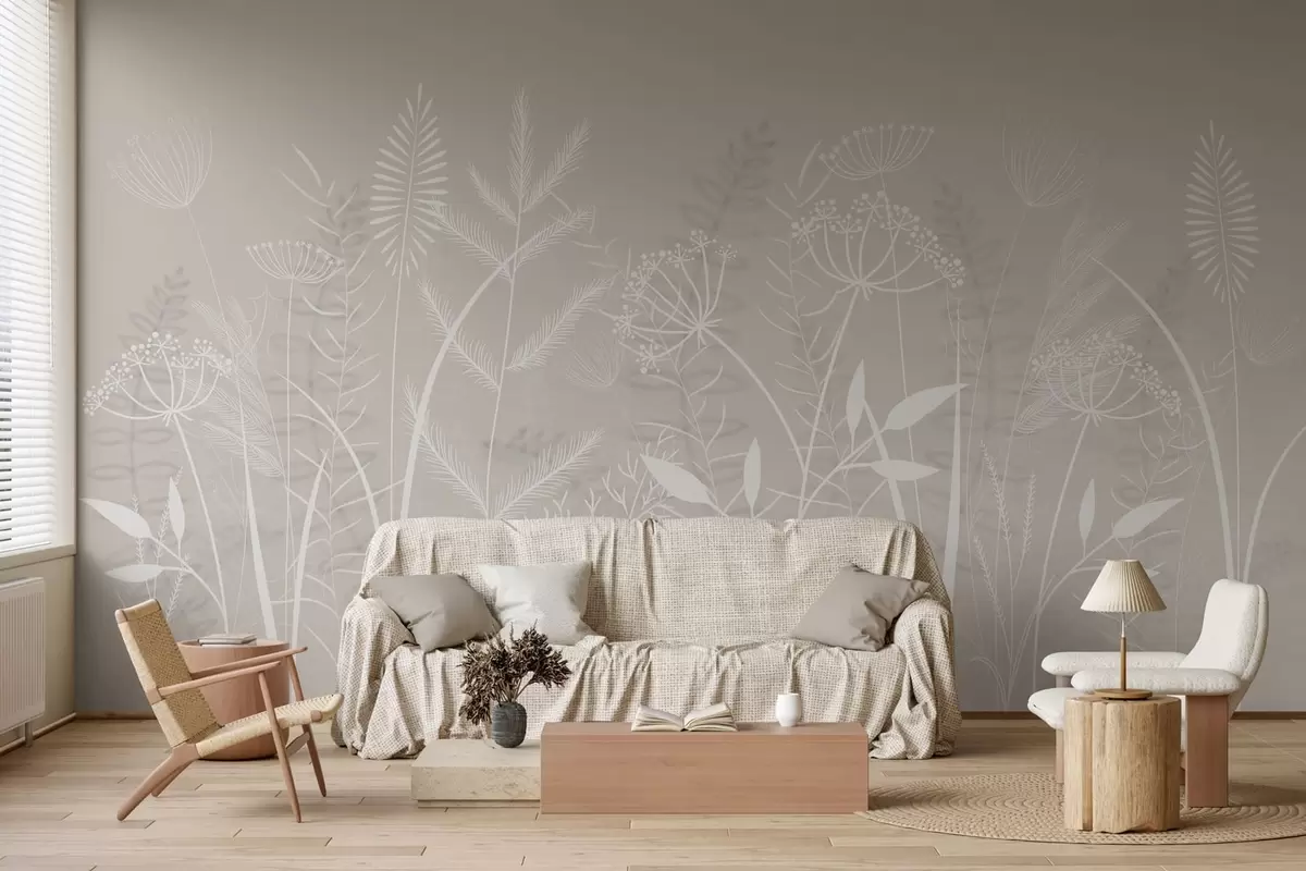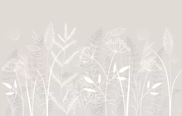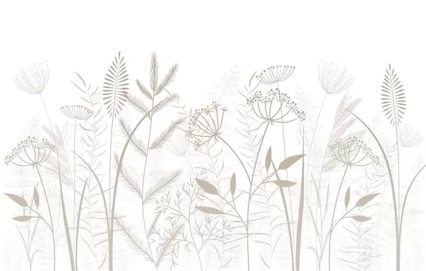 Fototapety jemné ručně malované divoké trávy a květiny na béžovém pozadí Č. w05383v1