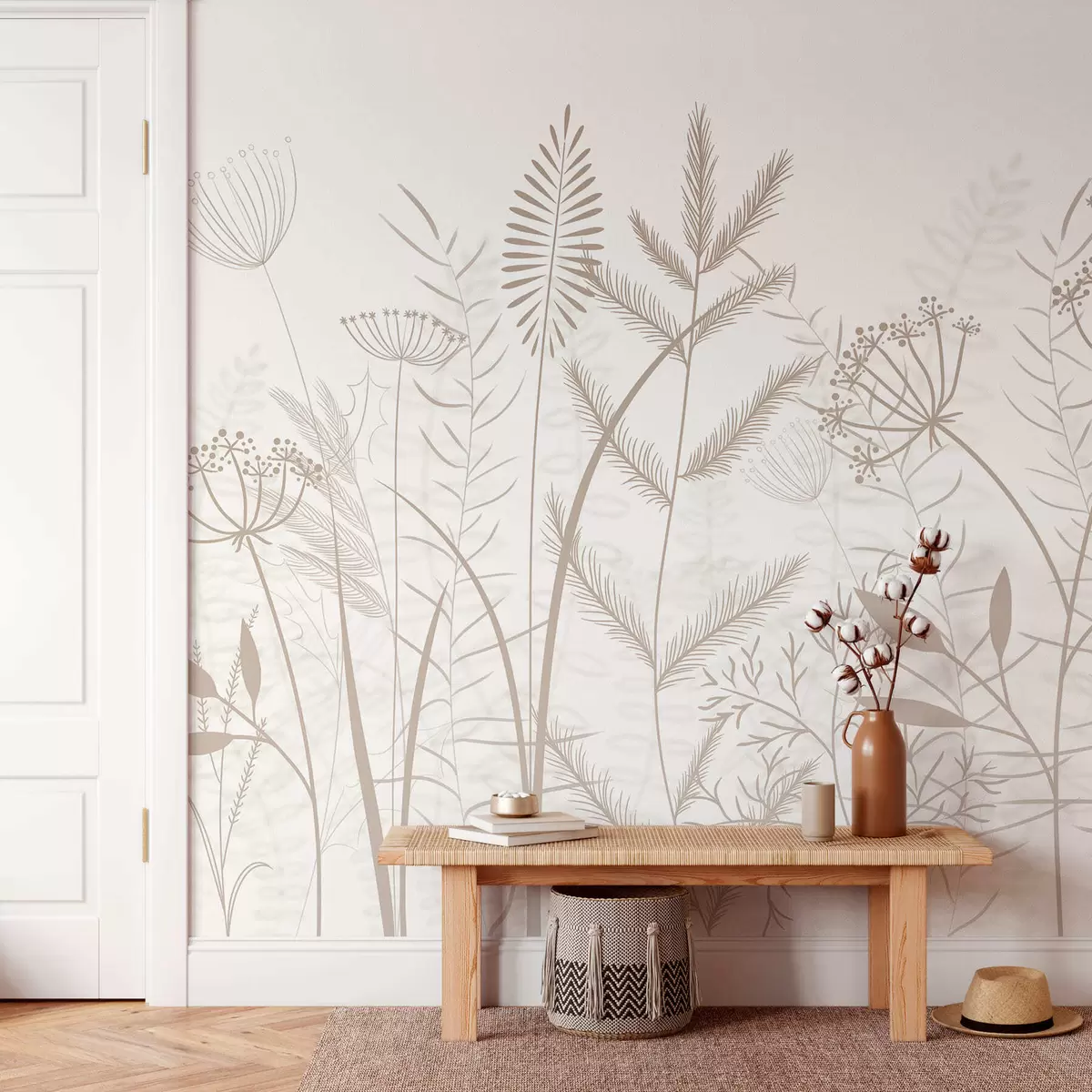 Fototapety jemné ručně malované divoké trávy a květiny na bílém pozadí Č. w05383v2