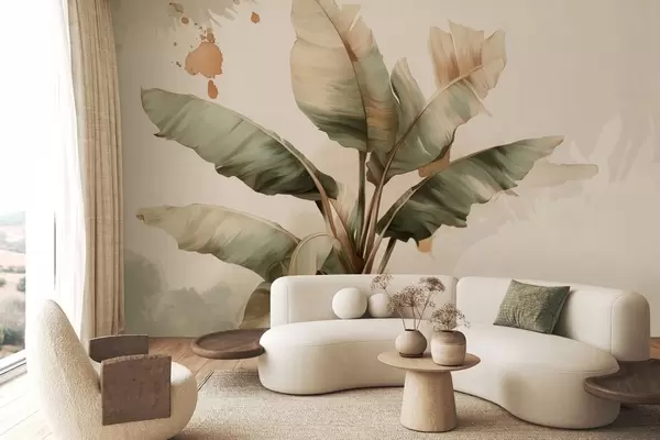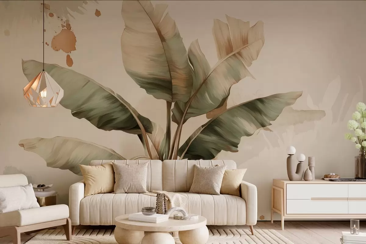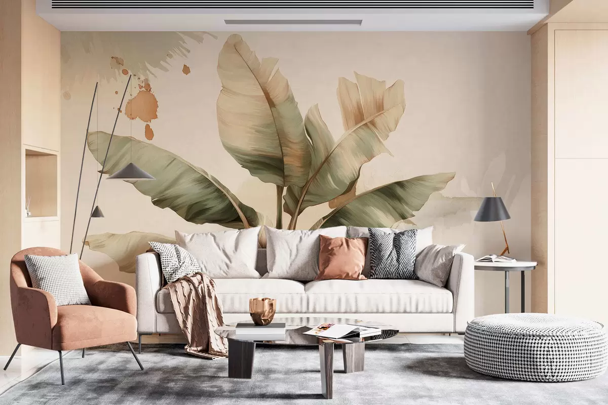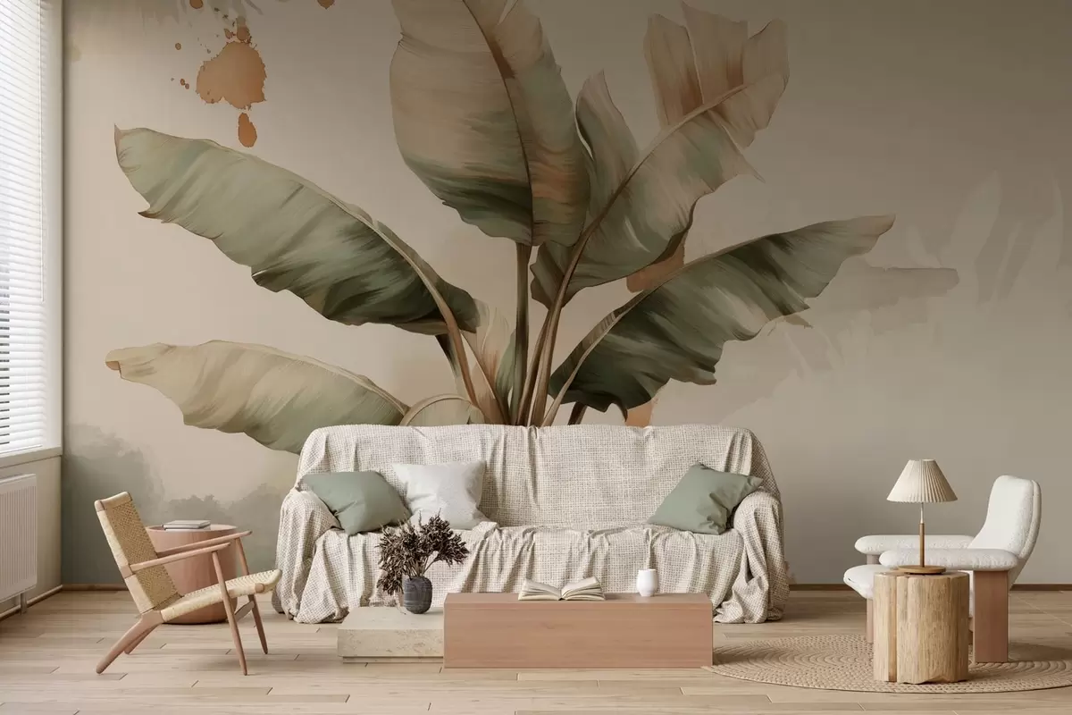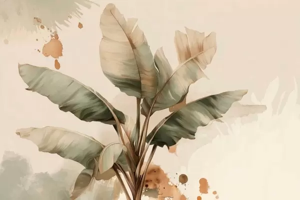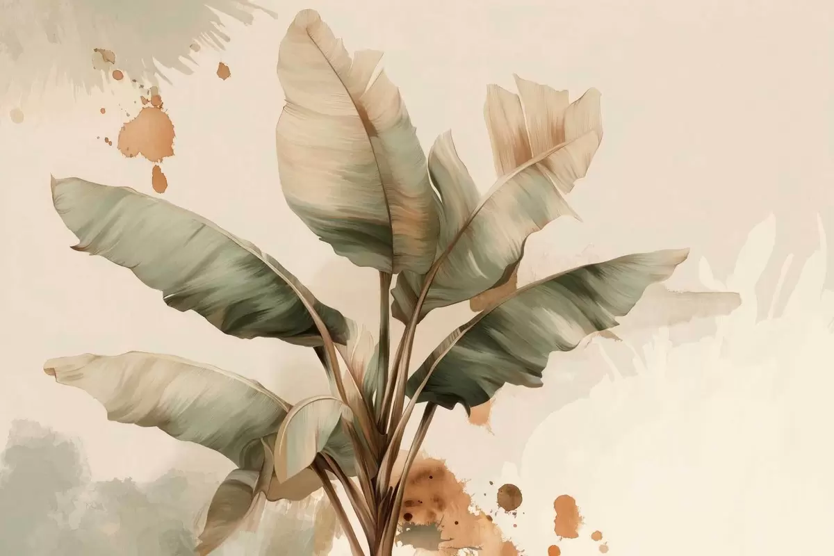 Fototapety velká, malebná kytice banánových listů s retro skvrnkami Č. w05384