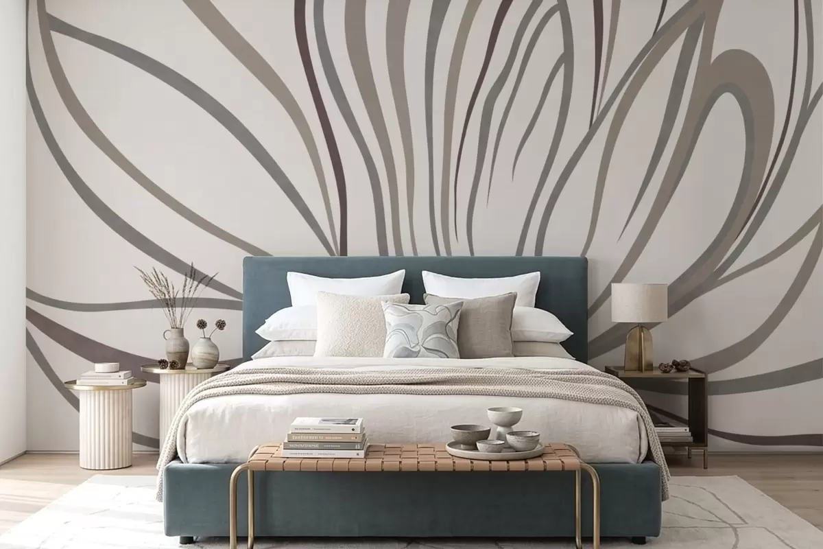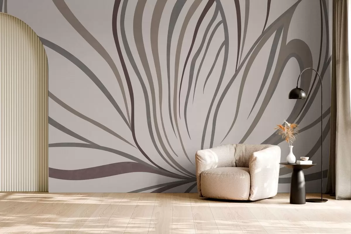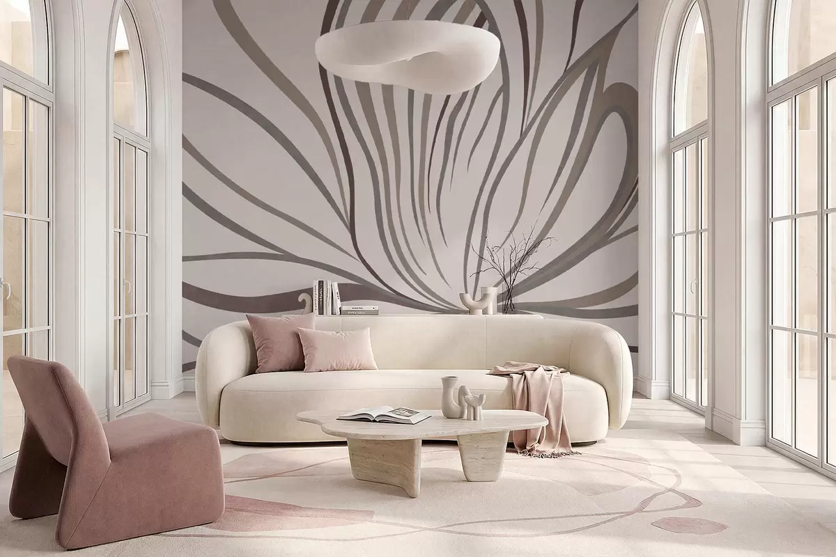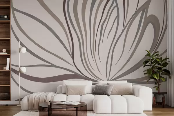 Fototapety Abstraktní květina s linkami v šedých a růžových odstínech Č. w05392