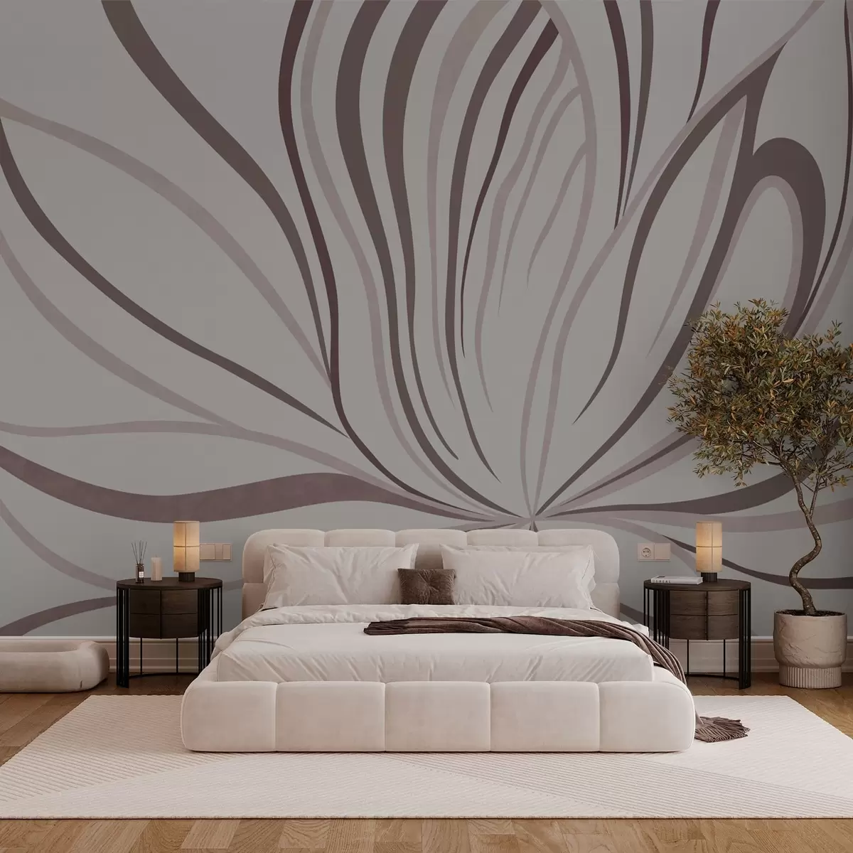 Fototapety Stylizovaná květina s jemnými liniemi v růžovo-béžových odstínech Č. w05392v1