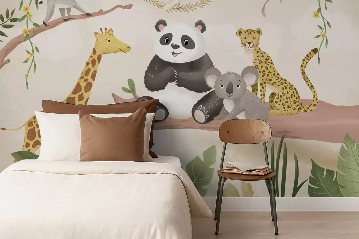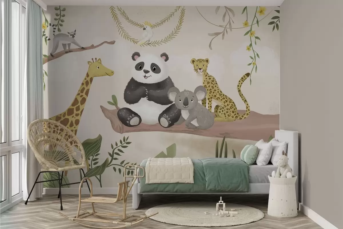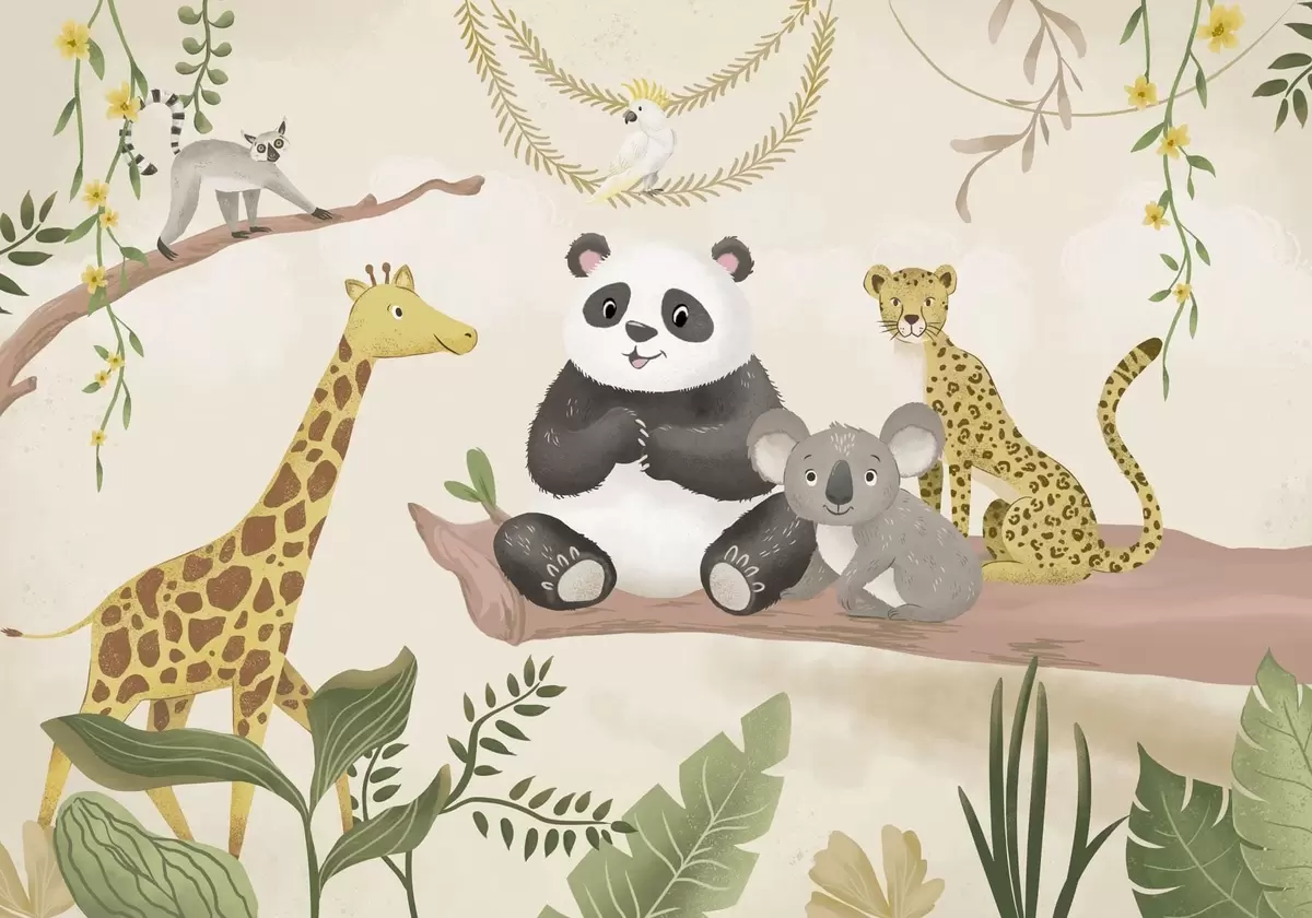Fototapety Roztomilá zvířátka z džungle na větvi mezi rostlinami Č. w05393