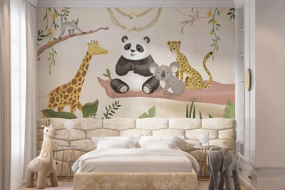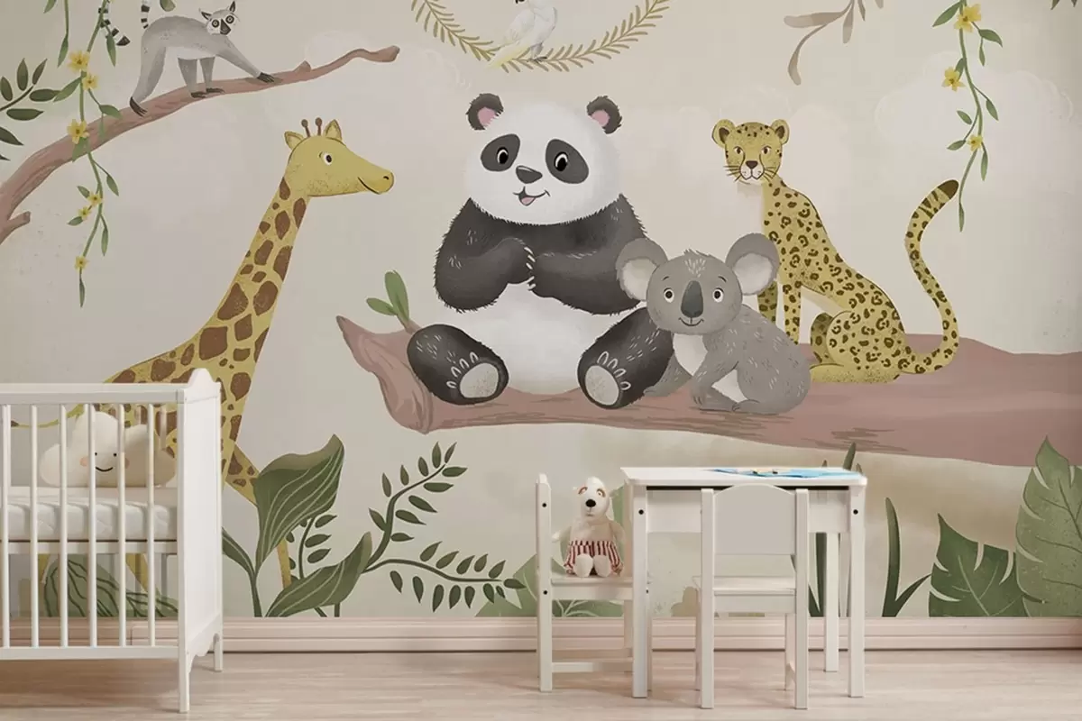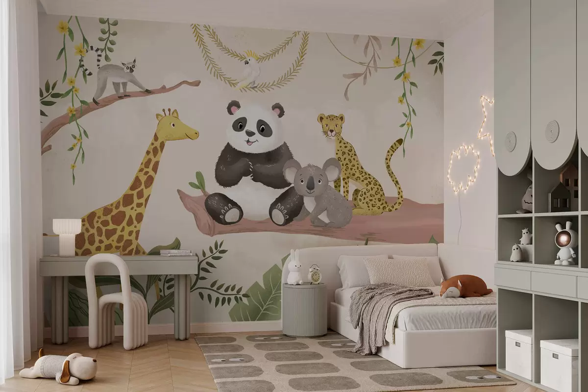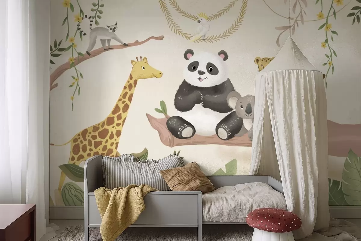 Fototapety Roztomilá zvířátka z džungle na větvi mezi rostlinami Č. w05393