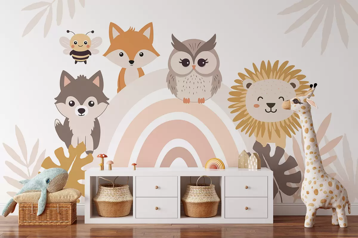 Fototapety Roztomilá zvířátka u duhy Č. w05399