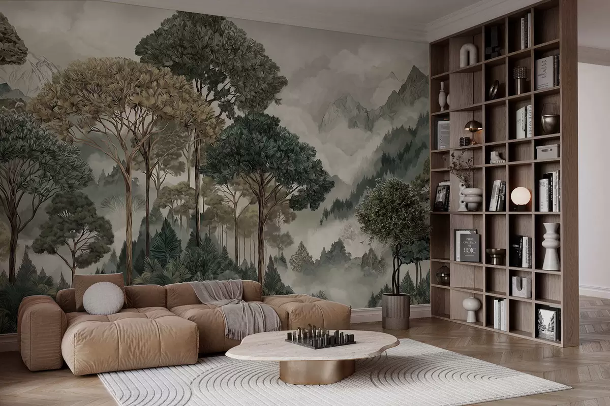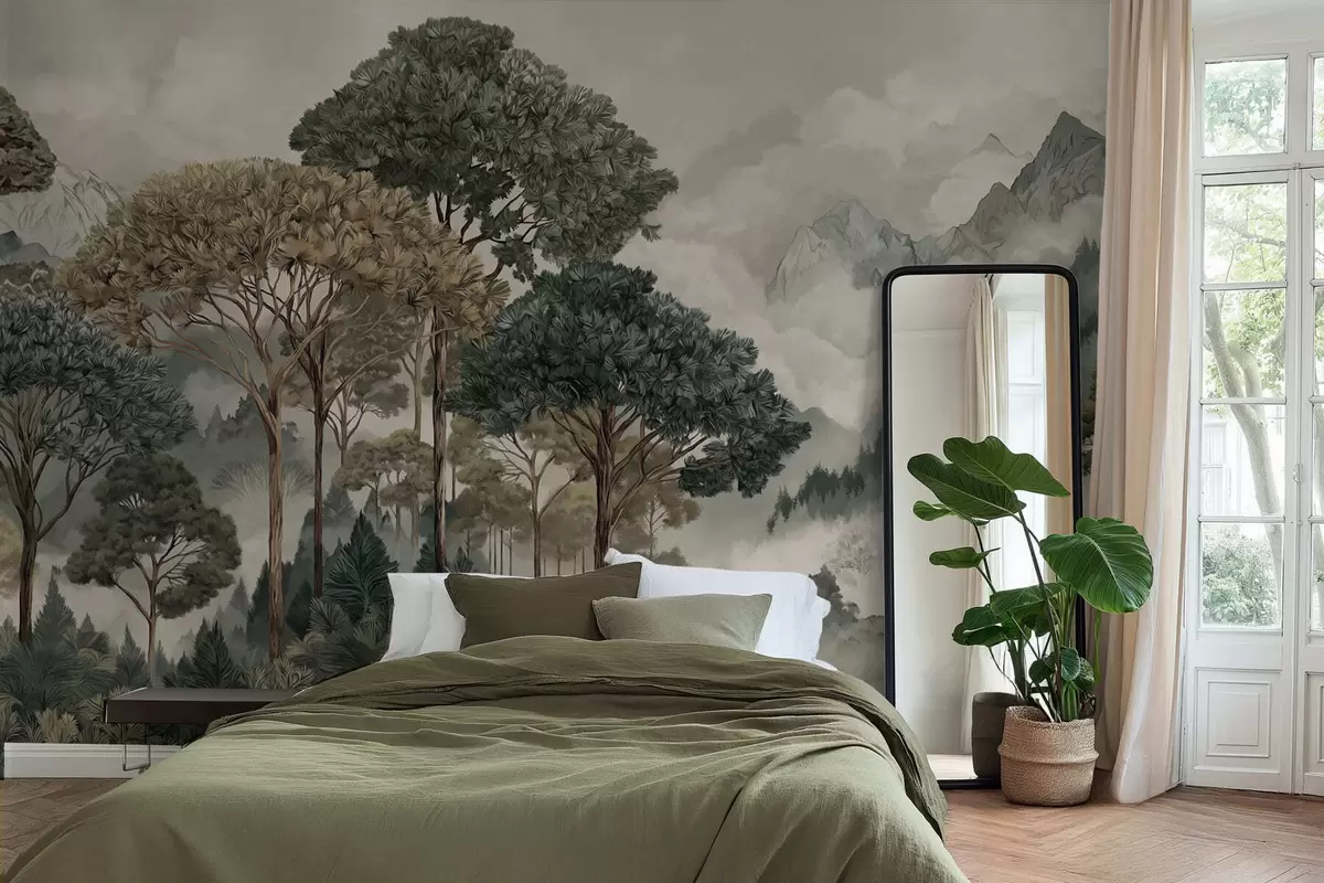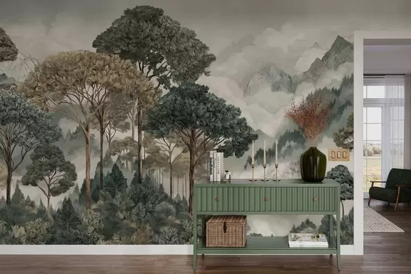 Fototapety Horská krajina s lesem v jemných tónech Č. w05410v1