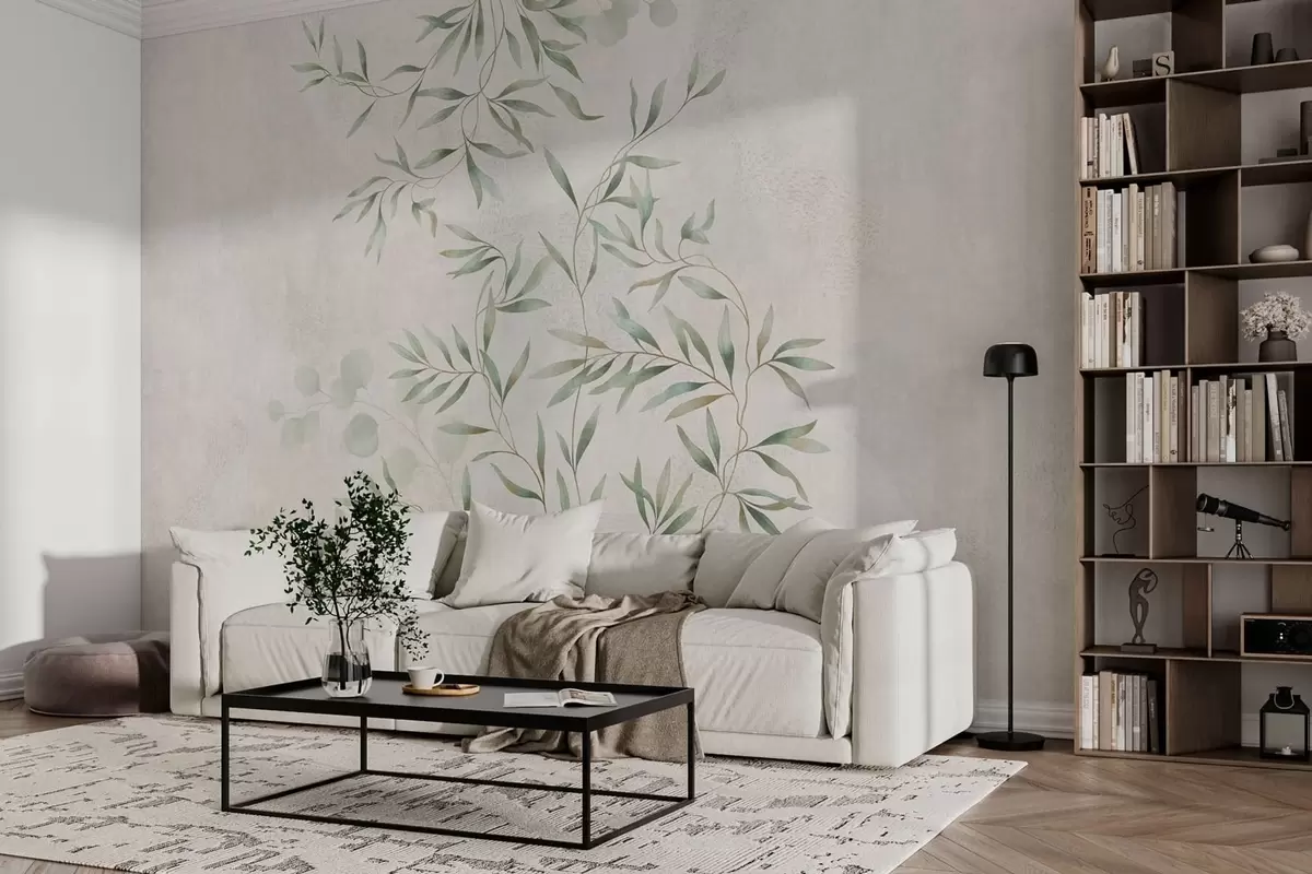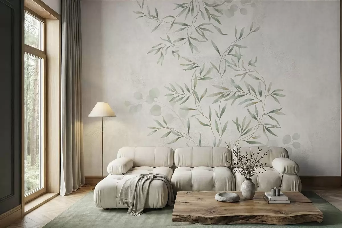Fototapety Jemný botanický vzor s tenkými větvičkami na světlém pozadí Č. w05424