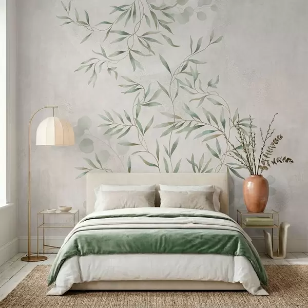 Fototapety Jemný botanický vzor s tenkými větvičkami na světlém pozadí Č. w05424