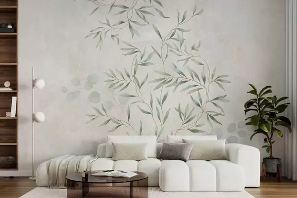 Fototapety Jemný botanický vzor s tenkými větvičkami na světlém pozadí Č. w05424