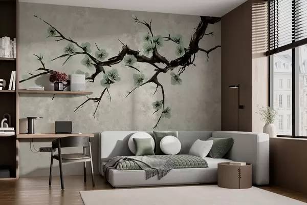 Fototapety Větev se zelenými květy v jemných barvách Č. w05425v2