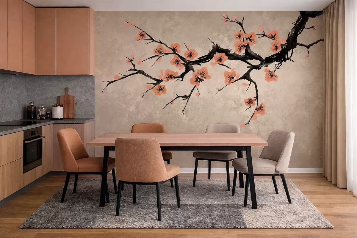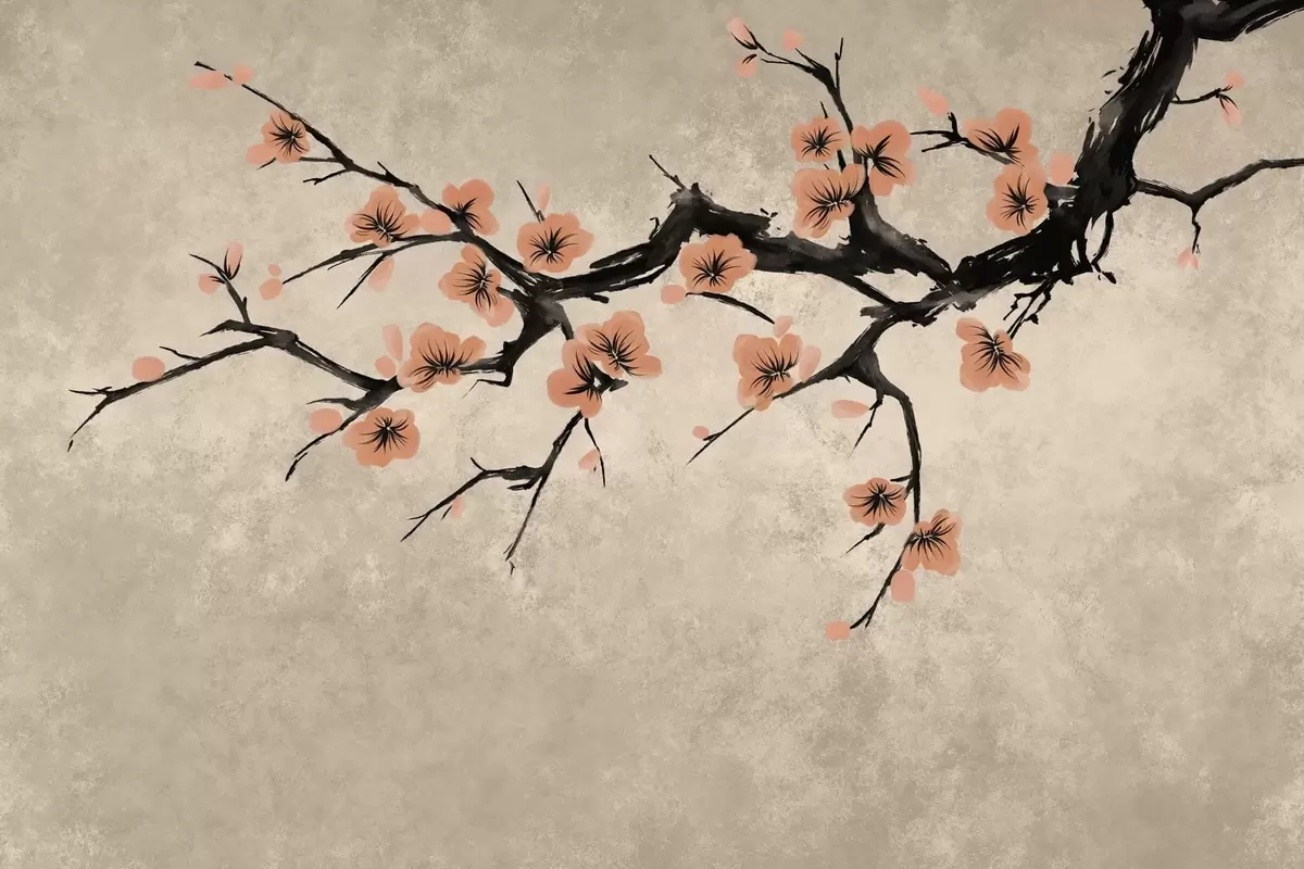 Fototapety Větev s broskvovými květy na strukturovaném pozadí Č. w05425v3